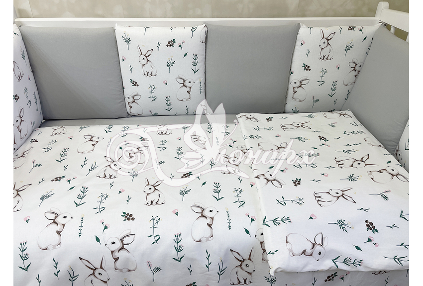 Бортик составной: 12 подушек 31х34 см на замочках упакованы в сумку-переноску.