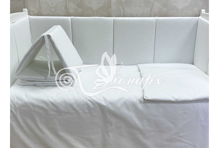 Бортики СО СЪЕМНЫМИ ЧЕХЛАМИ в кроватку: защитят Вашего малыша от ушибов, сквозняков, солнечных лучей и не дадут малышу запутаться в прутьях кроватки. - Простыня на резинке 60х120 см (подходит для стандартной кроватки)