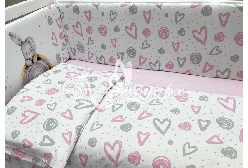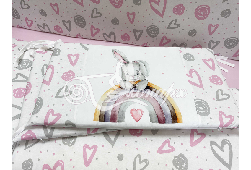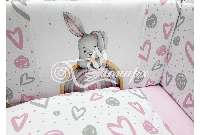 Бортики СО СЪЕМНЫМИ ЧЕХЛАМИ в кроватку: защитят Вашего малыша от ушибов, сквозняков, солнечных лучей и не дадут малышу запутаться в прутьях кроватки. - Простыня на резинке 60х120 см (подходит для стандартной кроватки)
