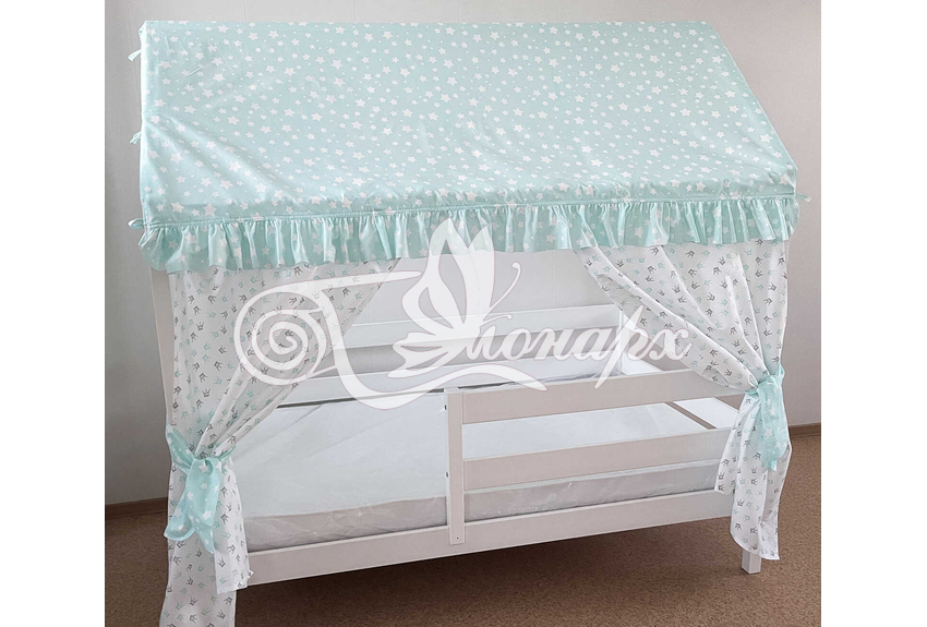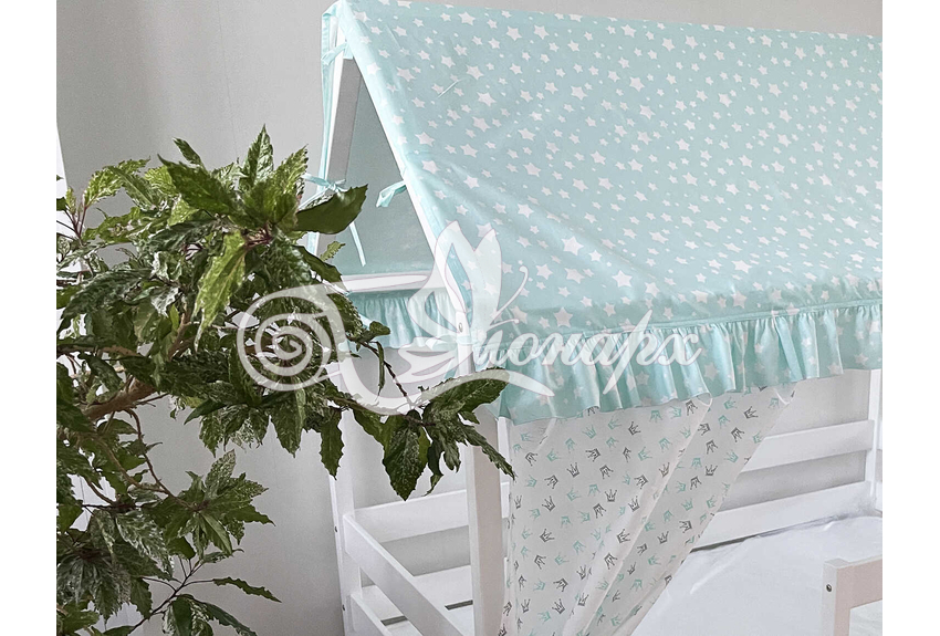 Крыша и шторы для кроватки домика ТД-8 купить в Екатеринбурге.Теги: комплект в кроватку домик, текстиль для домика, крыша для домика